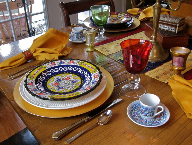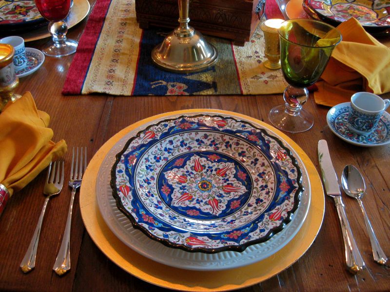 What a beautiful table. The Turkish plates are magnificant and I love the runner. Such vibrant colors and with wonderful history.