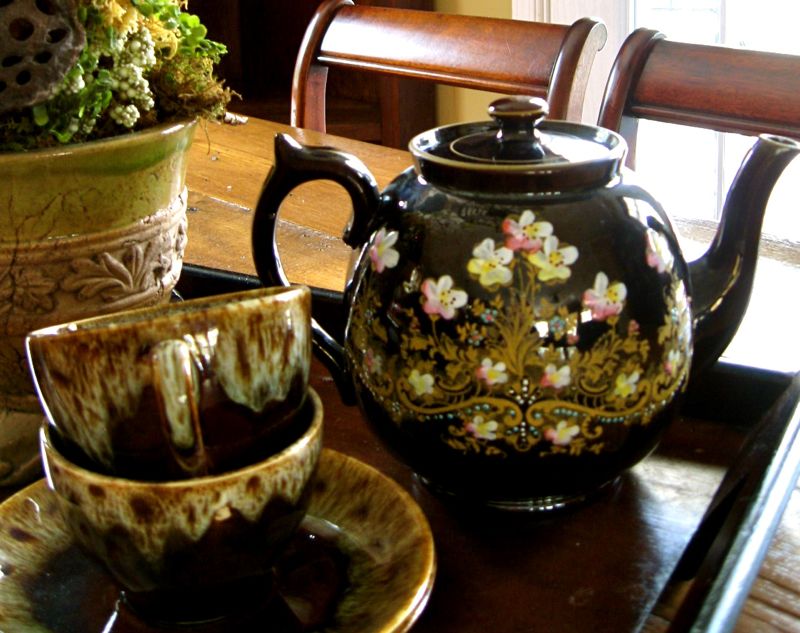 First, I had brown in mind and I wanted to use this little teapot from England my mom gave me.