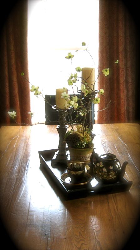 Beautiful vignette !! I love the dogwood branches and use of teacups and teapot. Wonderful inspiration, indeed. *Becca*