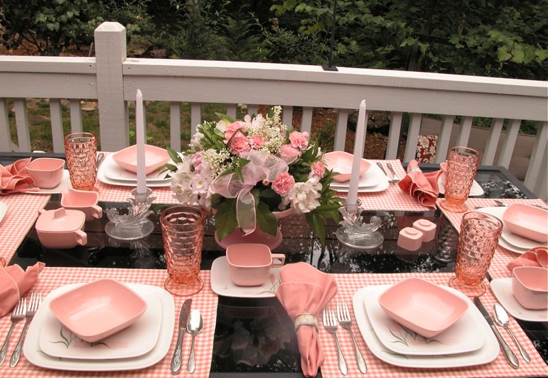 Anita….what a lovely table — reminds me of my childhood. Growing up in the 1960's, my mother's everday dishes were pink patterned melmac 🙂
