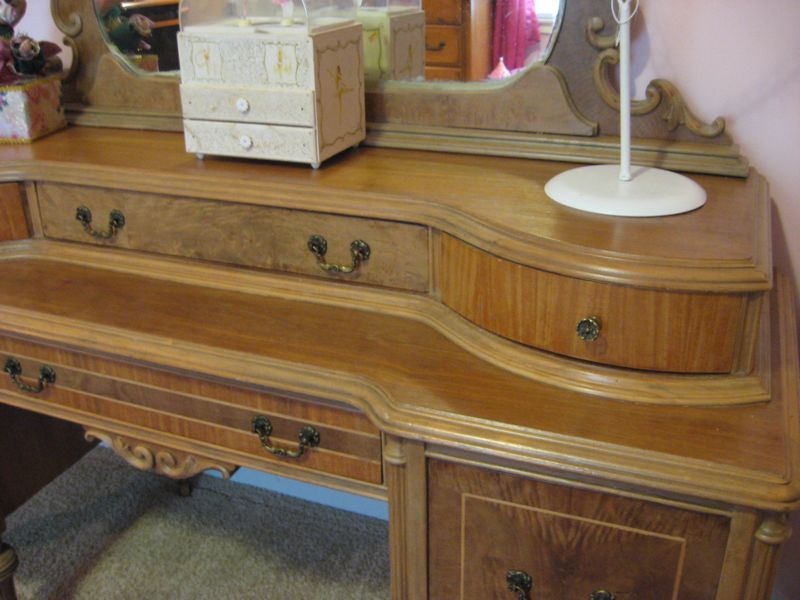 What a wonderful job you did. I love white but I'm glad you kept its natural finish. Does it have a dresser bench? If not, maybe someday you'll find one that will do justice to the dresser.