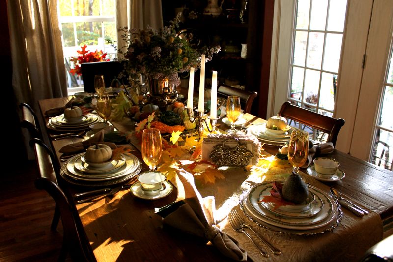 Just beautiful! I love the hydrangeas with the china!! Your table looks lovely and the sunlight pictures are beautiful!! Happy Fall!