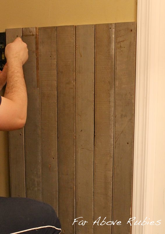 Our Family Room has real old weathered wood on the bottom third of the wall. My hubby wanted to replace it and I asked if we could leave it up. He said okay. It was there when we bought this old house and i think it was originally porch wood that was repurposed into this room out of necessity.