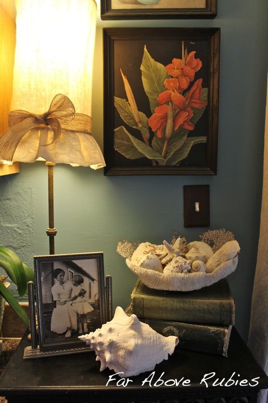 My grandmother had this collection of shells and coral that she had found, so I brought them in for this vignette. She is with my great grandmother in the photo.