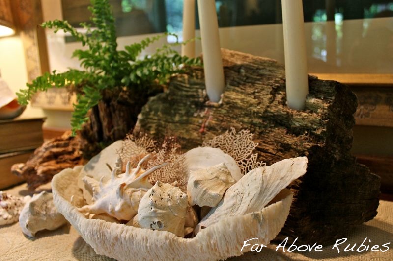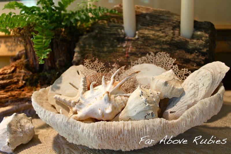 This coral filled with shells was always displayed at her house and since I got it, I have used it in several different places.