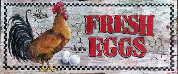 I thought the chicken house needed a sign, so I looked online for vintage “Egg” signs…