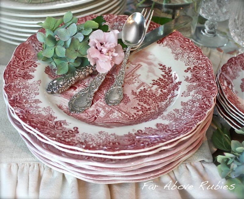 I am thrilled to have just discovered your blog…the red transferware lured me in and to my delight everything here is just lovely…the beautiful table you have set and the menu you have planned will no doubt light up everyone's day, especially Aunt Jody's. I can't go without mentioning how stunning the "Louvre" silverware is…did not know of this pattern. Already skipped ahead a saw the pink typewriter and the dishes that came with sacks of flour…can't wait to explore more here…you have made a beautiful home and your blog title is no doubt well chosen. So nice to "meet" you.