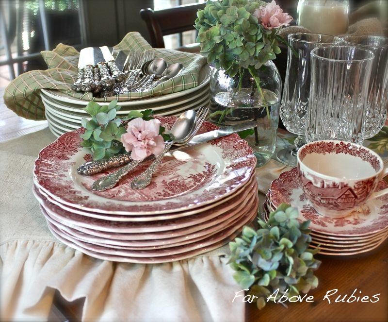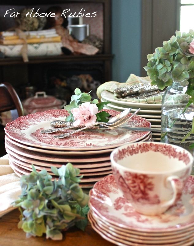 I love the red transfer ware! This table will be beautiful. I know the ladies will feel very special with your beautiful luncheon for them.