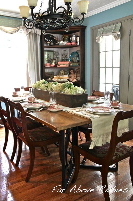 What pretty china~ don't you love red transferware! It is a good thing that I was not a guest… your silver just might have ended up in my purse! Soooooo gorgeous!