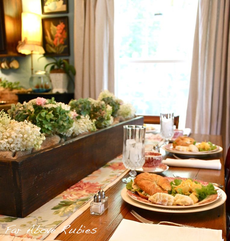 What a wonderful way to make your Aunt feel so special! Your table looks fresh and summery. As always, the wooden box centerpiece looks fabulous. I like your runners, too!