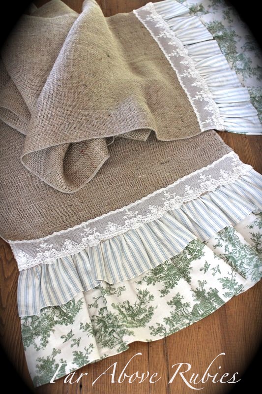 What sweet creations. I've been wanting to make some burlap table runners with ruffles. Yours are gorgeous! I'm always intrigued by old black and white photos too, especially of people and their businesses back. How wonderful that you have those old photos.