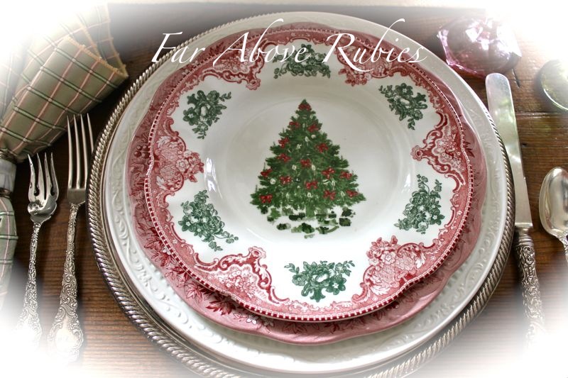I think I deleted my comment, but I wanted to say how gorgeous and so beautiful your selections this year have been.I love the dinner ware and pink, green goblets. Your tree is precious and Cristian's star!God Bless and take care my friend.