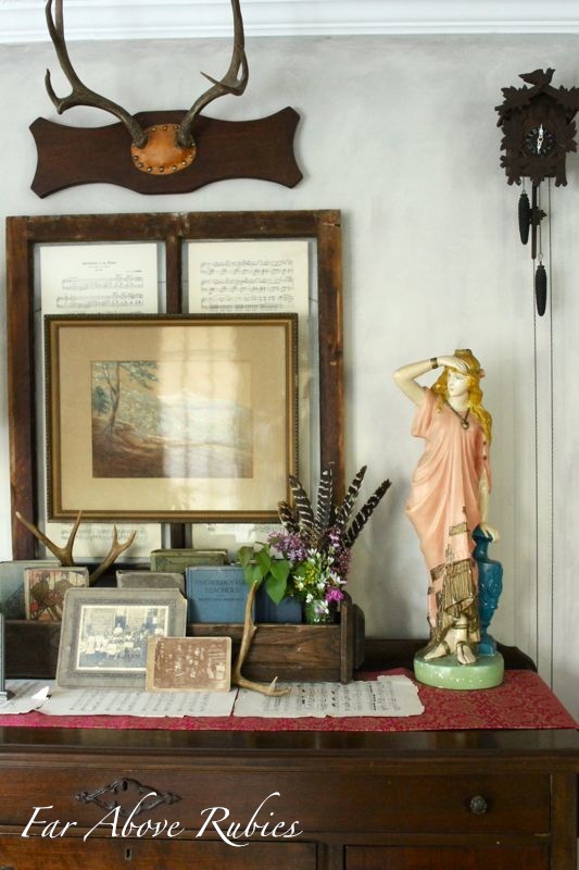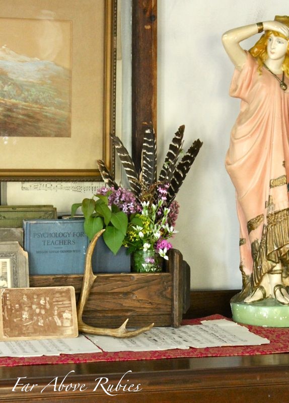 My sweet 11 year old collected and arranged these blooms for me and placed them here on the buffet. I was so surprised to find them after she had gone to bed.