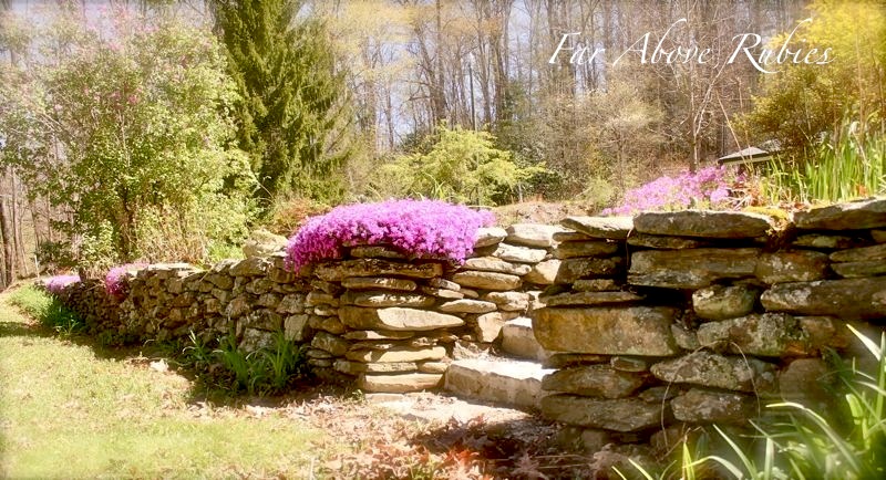 My dad and I worked on a remaining section of this 100-year-old stacked stone wall around their house that had never been completed. You can see my mother’s “Thrift” is also flourishing.