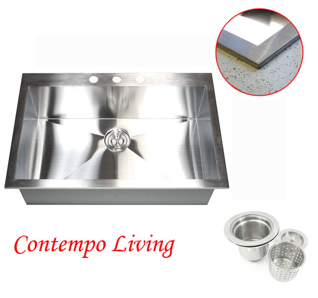 So I turned to stainless steel and started the search over again. Yes, that’s right…again. Ugh. How hard do you think it is to find a stainless steel top mount sink that is 9″-10″ deep, at least 25″ wide and not the typical rounded edges? Pretty difficult then throw in my price range and it is virtually impossible.