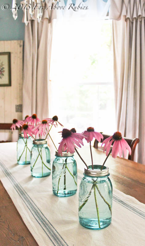 Beautiful floral pics, Anita. I love the coneflowers in the blue mason jars on the table. There is nothing like country flowers in the summer is there. Pamela
