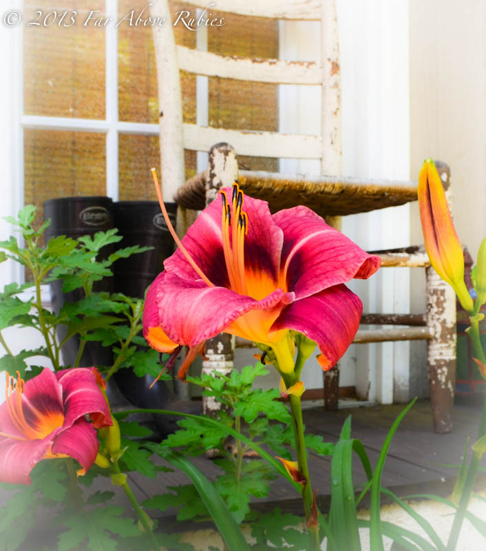 I transplanted these daylilies early this summer and they were so nice in front of the storage and playhouse.