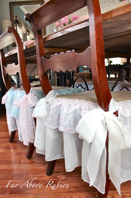I recovered the seats for the guys with plain burlap so they don’t have to sit in a ruffled chair:-)