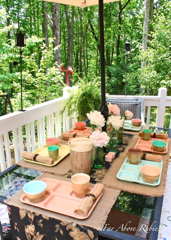 I made placemats…and they worked really nicely with the vintage burlap “Raffiaware” pieces.