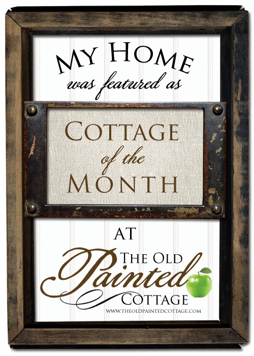 …I got another pleasant surprise from Jennifer at The Old Painted Cottage. I have been a fan of her style and monthly series, Cottage of the Month, for a while. I cannot wait until the first of every month to see who she features. She always has so much variety in style that I keep going back to browse– so much so that I have COTM bookmarked. This month she has featured my humble home! Really!?! I am pinching myself and am *so* honored to be featured amongst some of my favorite bloggers in this series. You can click on the link to see her feature.