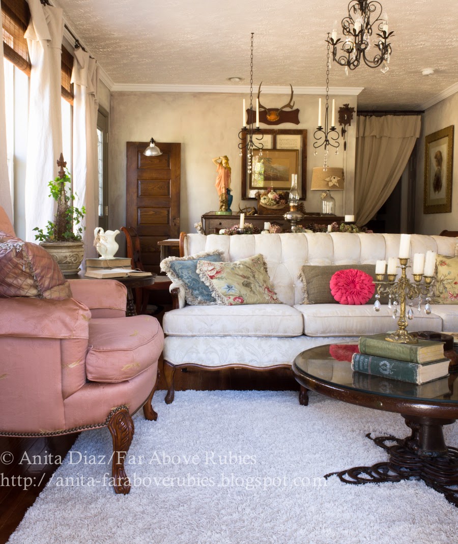 After selling the leather furniture and starting over with only the antiques and family pieces I had, or could dig up here, I really found my own unique style.