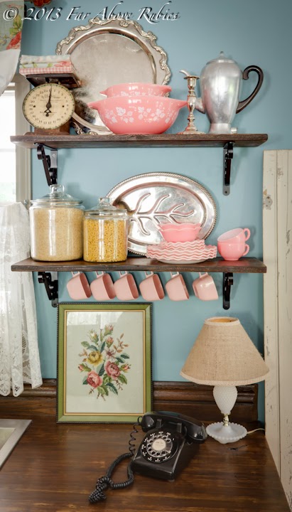 The bathrooms also got pink walls and all vintage accessories…and the boys have not complained yet.