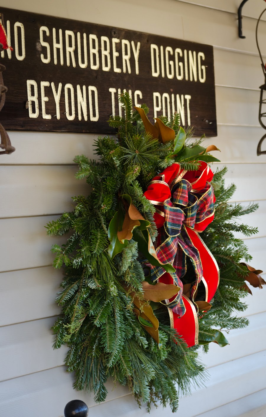 My mom has a friend who makes these beautiful wreathes up in Tennessee, so I used this one between the french doors. I added the tartan ribbon to the red bow she made.