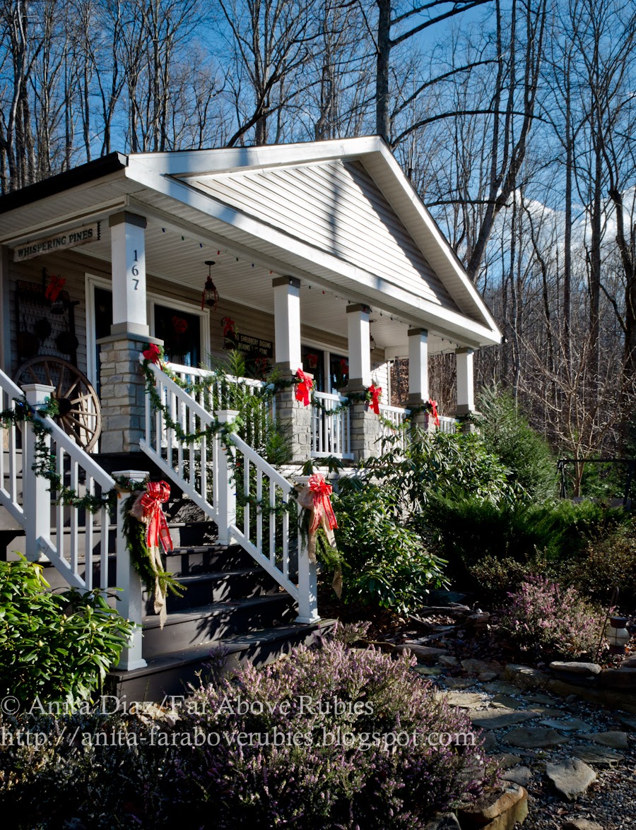 Your country home looks beautiful, Anita! I love how you added fresh greens into the faux wreaths. Such a great idea. Your living room looks so lovely and I wouldn't mind sitting out on your porch with that beautiful sunshine.