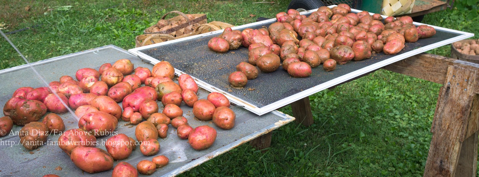 They will get washed, dried, then sorted and put in the root cellar for the season. My parents will add more grown by my cousin, and we will be set for winter.
