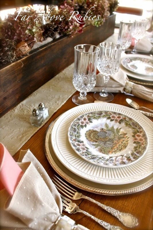 Glad you reminded folks which side the knives and forks go on and to turn the blade side in on the knife. That's a great tip for the novice homemaker. Also great that you used a mix of thrift, vintage, and heirloom pieces to complete the table. It really is reflective of how most tables probably come together and, again, let's the novice tablescaper know it's not necessary to run out and buy all new, expensive stuff.