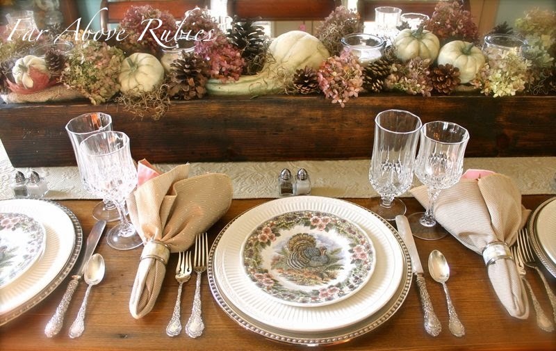 Last year, I decided to try a budget version of my Thanksgiving table using the same centerpiece, and changed out the rest to everyday and thrifted items.