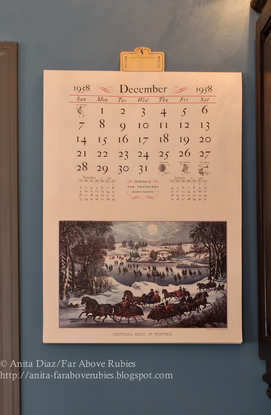 I have loved so much using vintage calendars — especially Currier and Ives. Once you figure out the corresponding year, it’s easy to find a match. I don’t have a 1959 one, though, so I better start looking.