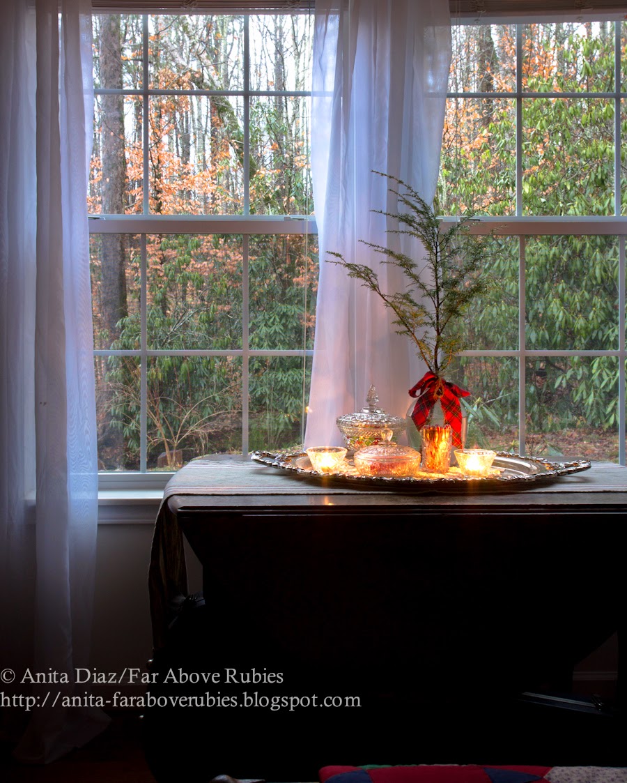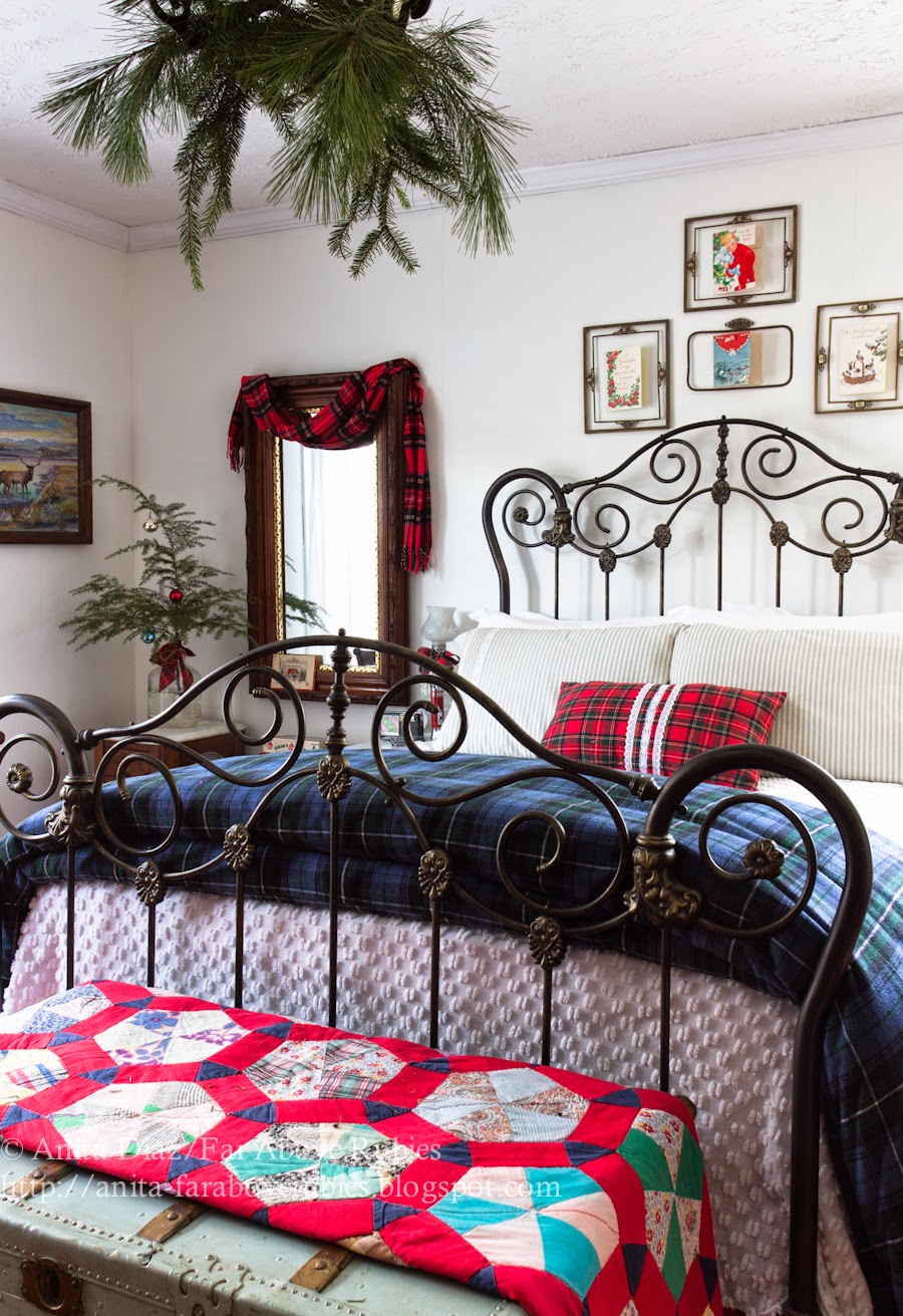 I love it all, Anita, especially the tartan plaids. The vintage Christmas cards are so sweet in the metal frames! It was very cold here in Winston-Salem, yesterday. My mom and I were out shopping, and the wind was bitter. I'm sure you're glad to have the warm and cozy comforter on your bed right now.