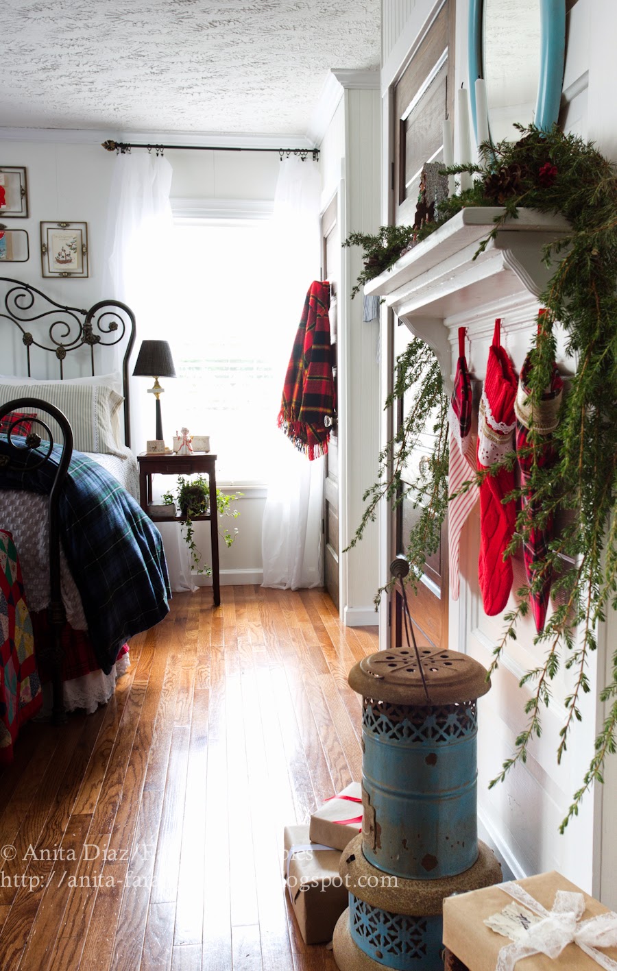 This is so beautiful Anita! I love how you've mixed the different plaids/tartans for this wonderful Christmas bedroom. Your mantel is just beautiful…oh, how I'd love a fireplace in my bedroom! Merry Christmas to you and your family! XO