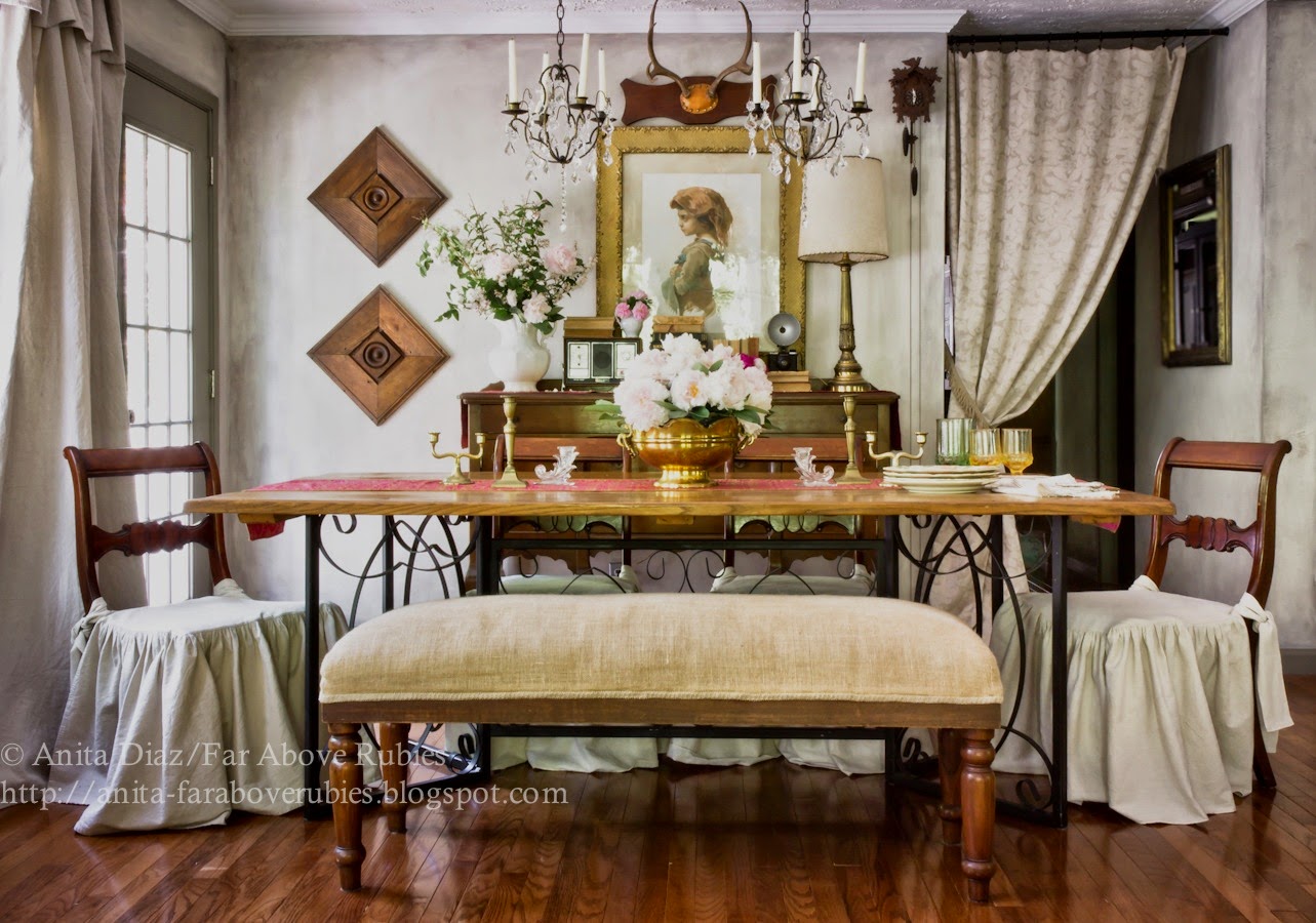 I made slipcovers for the dining room, lots of pillows and got out all the brass accessories I could find.