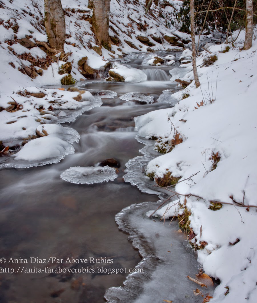 How beautiful! I would love to have a creek on my property, a life long dream! Thank you for braving the cold to get those beautiful photos! We are about 60 miles south of winter weather and school closings. We hope to at least get one snow day!