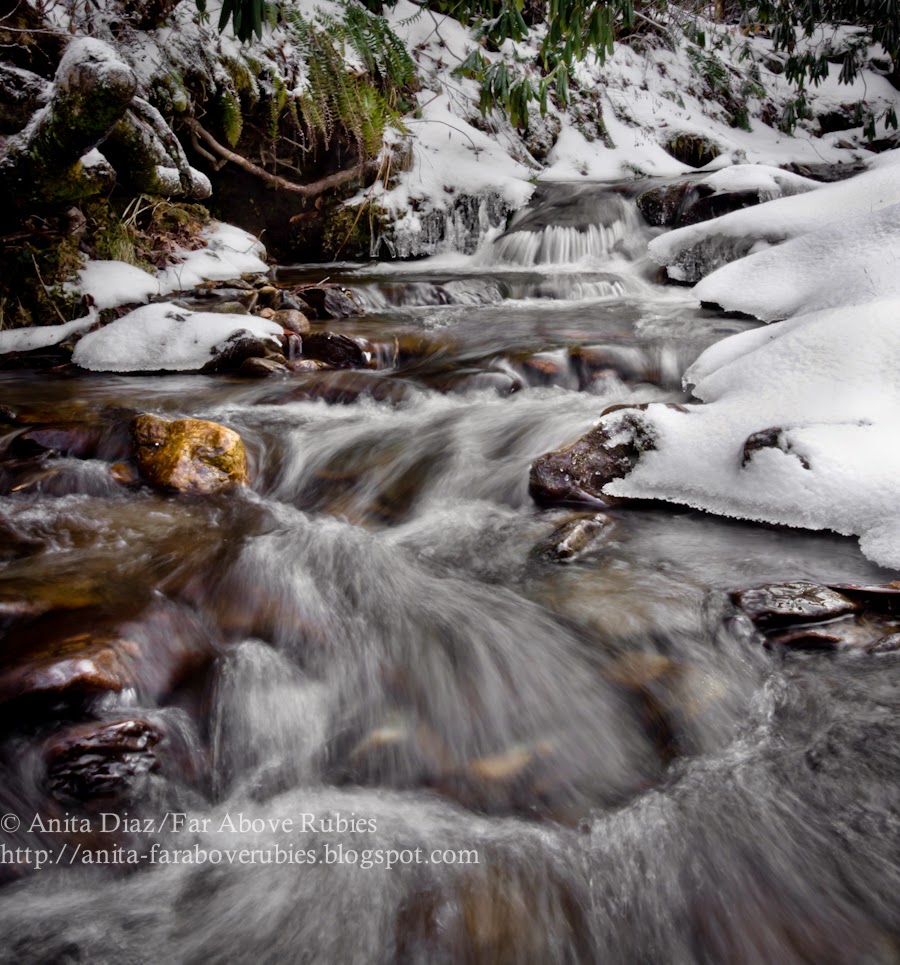 We enjoy our creek all year round, but it definitely takes on a life of its own in the winter. I braved the single digit temps last evening once the sun went down and went out to capture some “silky” water shots.