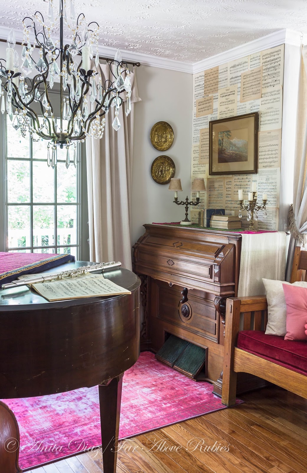 What a very special room Anita and love that you added your signature summer pink in the room. How great is it that you have your Grandmother's settee back in the family….I can only imagine the wonderful music being played in that room and filling the entire house with sweet melodies.