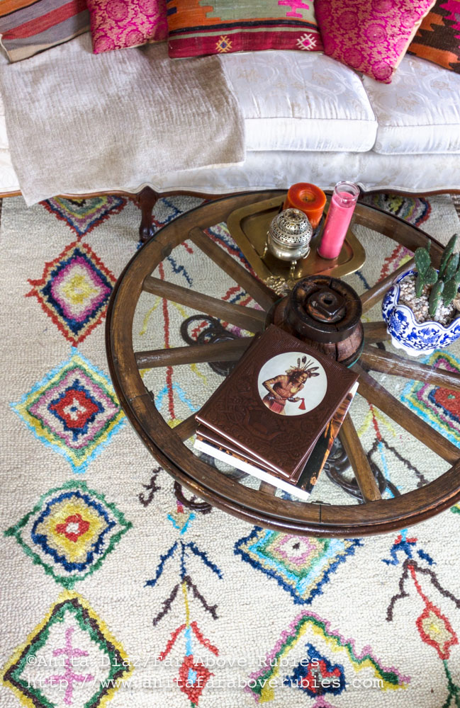 I was actually unsure about my bold choice when I first rolled this rug out, but my husband loved it, and once I got it down I knew it was perfect. It really is just another testament to stepping outside the box and taking a chance.  This rug has so many possibilities as far as color and style, and I love something with versatility. But mostly, I just *love* it:-)