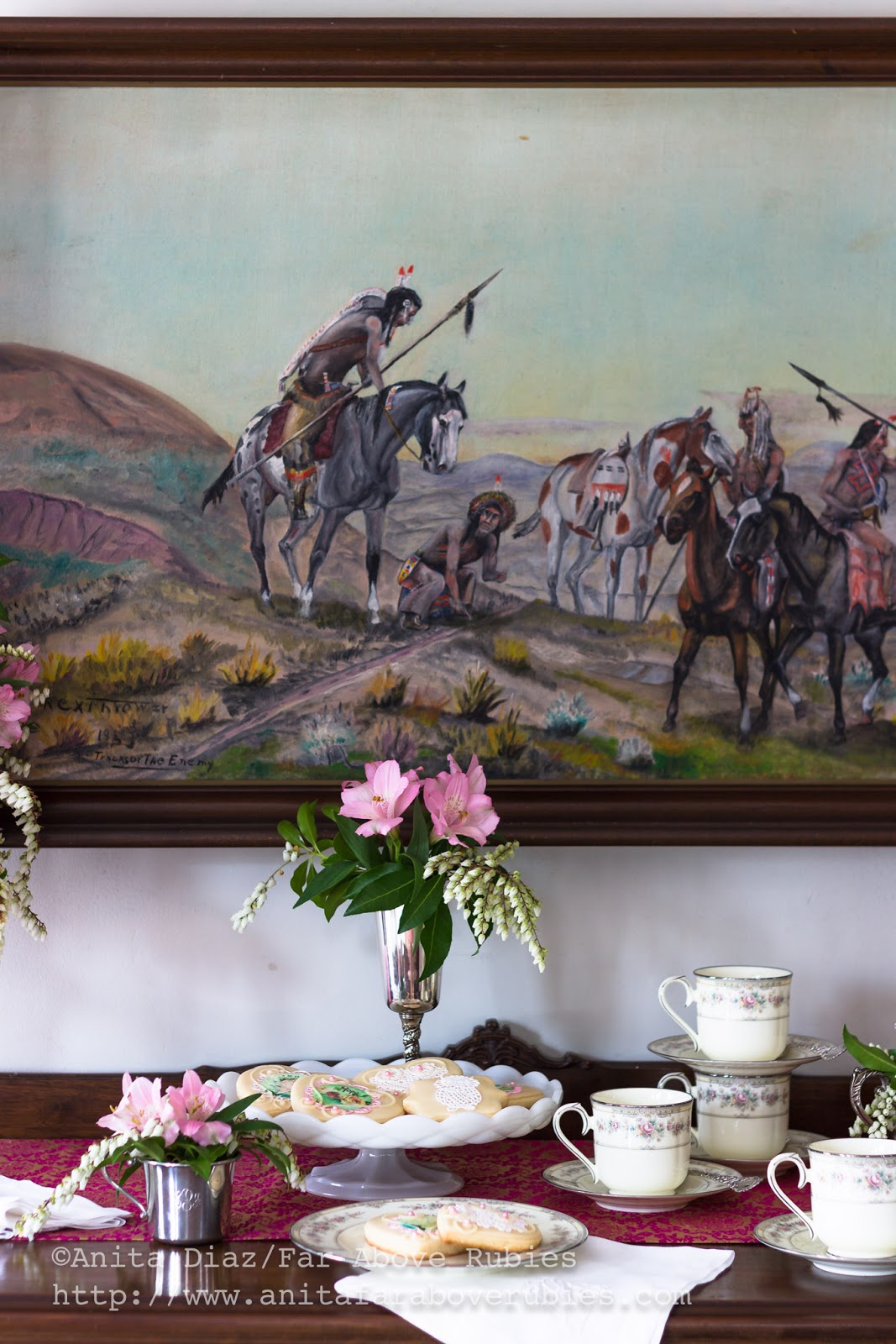 Work of art, the cookies! Pretty tea buffet with the painting above, all the colors come together.