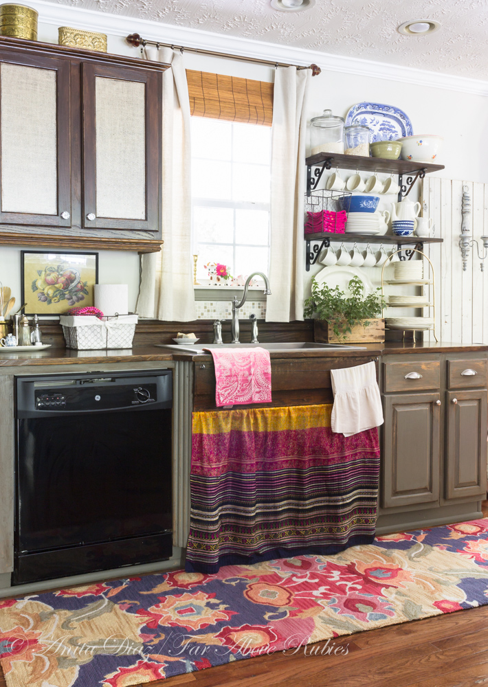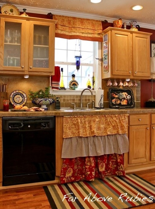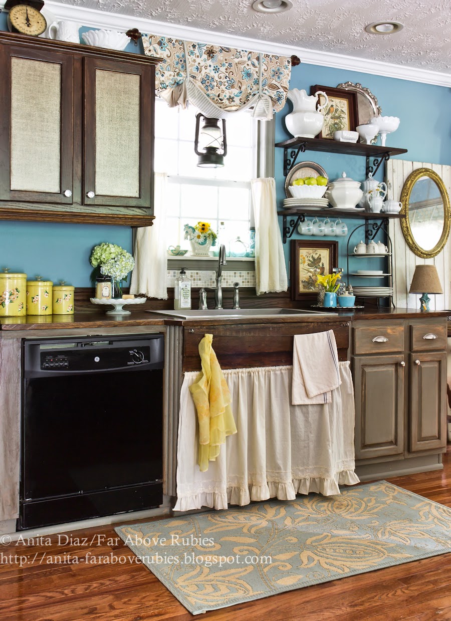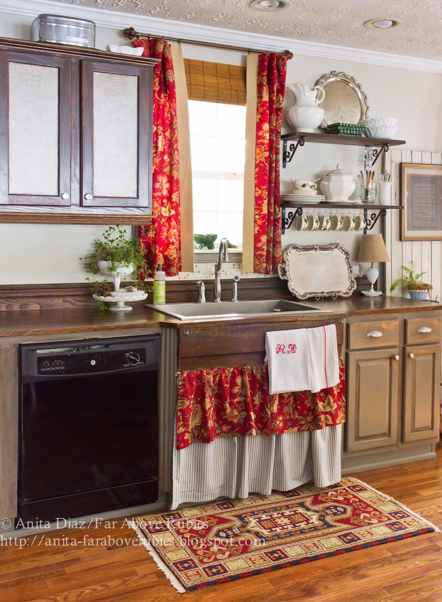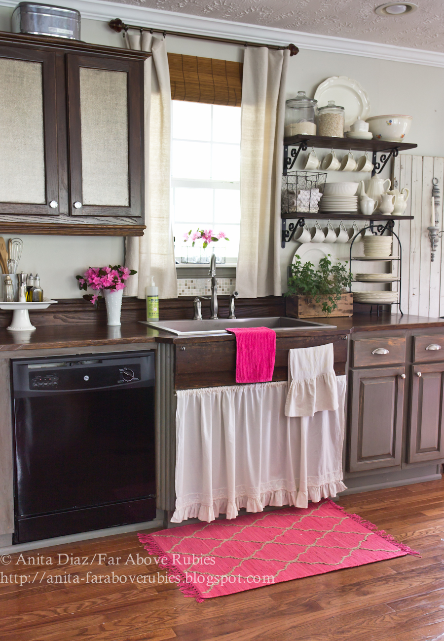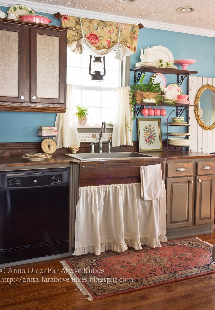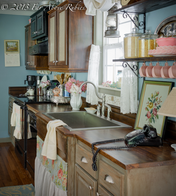 Omg! Love all the looks! I especially LOVE all your sink skirts!!! You have inspired me to change up my look! I am a red and white gingham girl!! My skirt is such as well as tablecloths in my farm kitchen! Pove your open shelving with the row of cups! Would you consider making me a ruffle sink skirt like yours!! I'll gladly pay you! My email is papjohngram[at]yahoo.com! Thanks Anita,Cindy