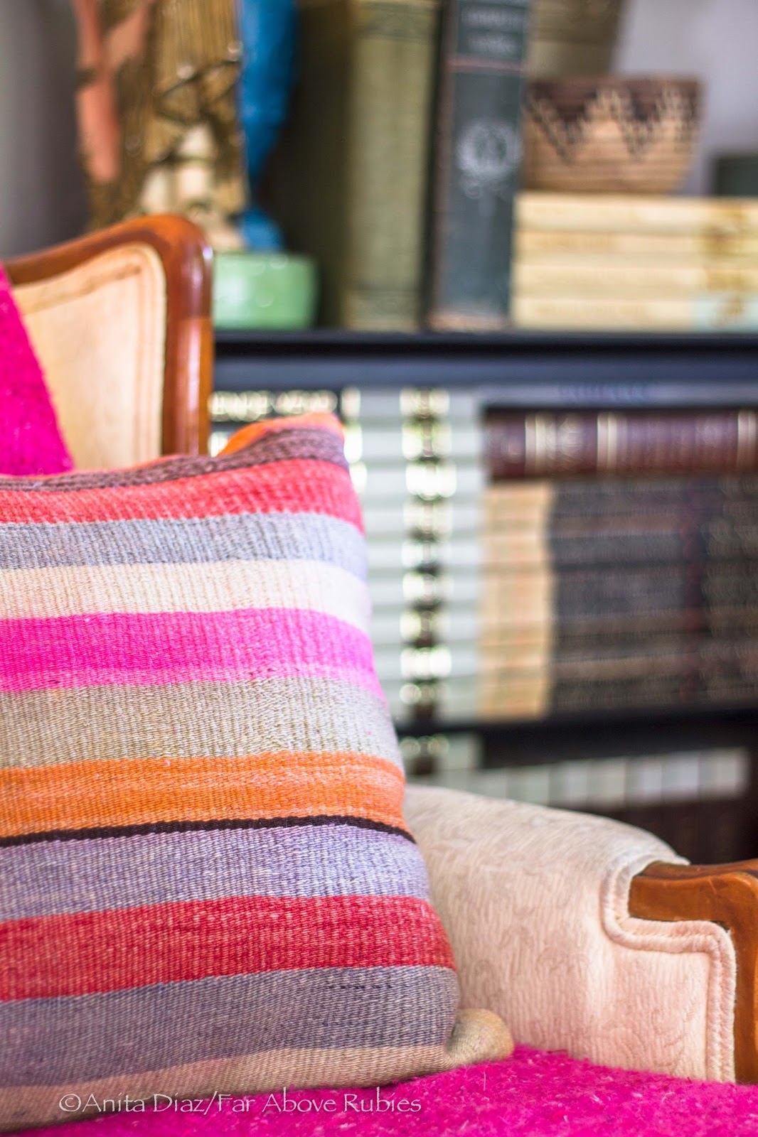 This is so beautiful, Anita. I love your family story because that makes it all the more special. The way you use that fuchsia around the house just knocks my socks off. Love, love that rug in the family room too. Keep it up!