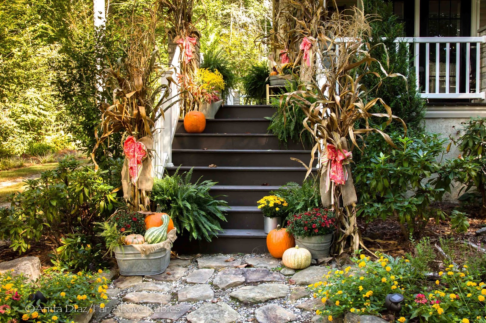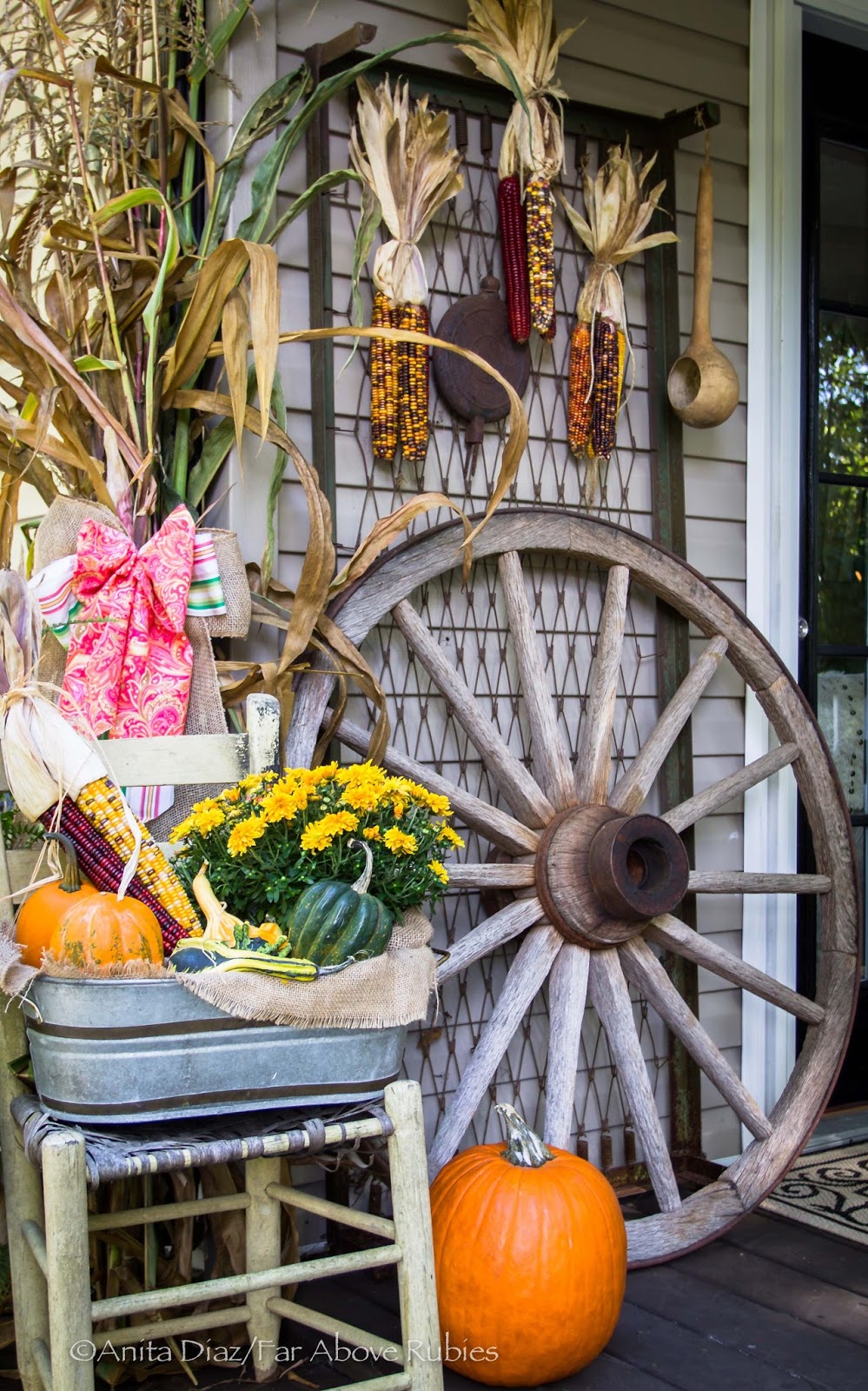 For fall, I have really embraced my Appalachian culture here and used local corn, pumpkins and gourds along with corn stalks from my dad’s garden.