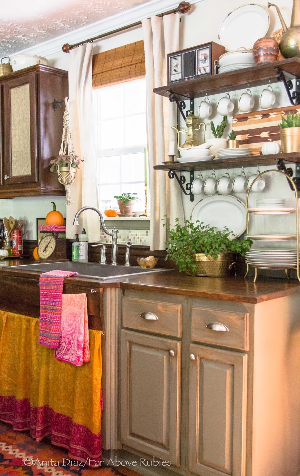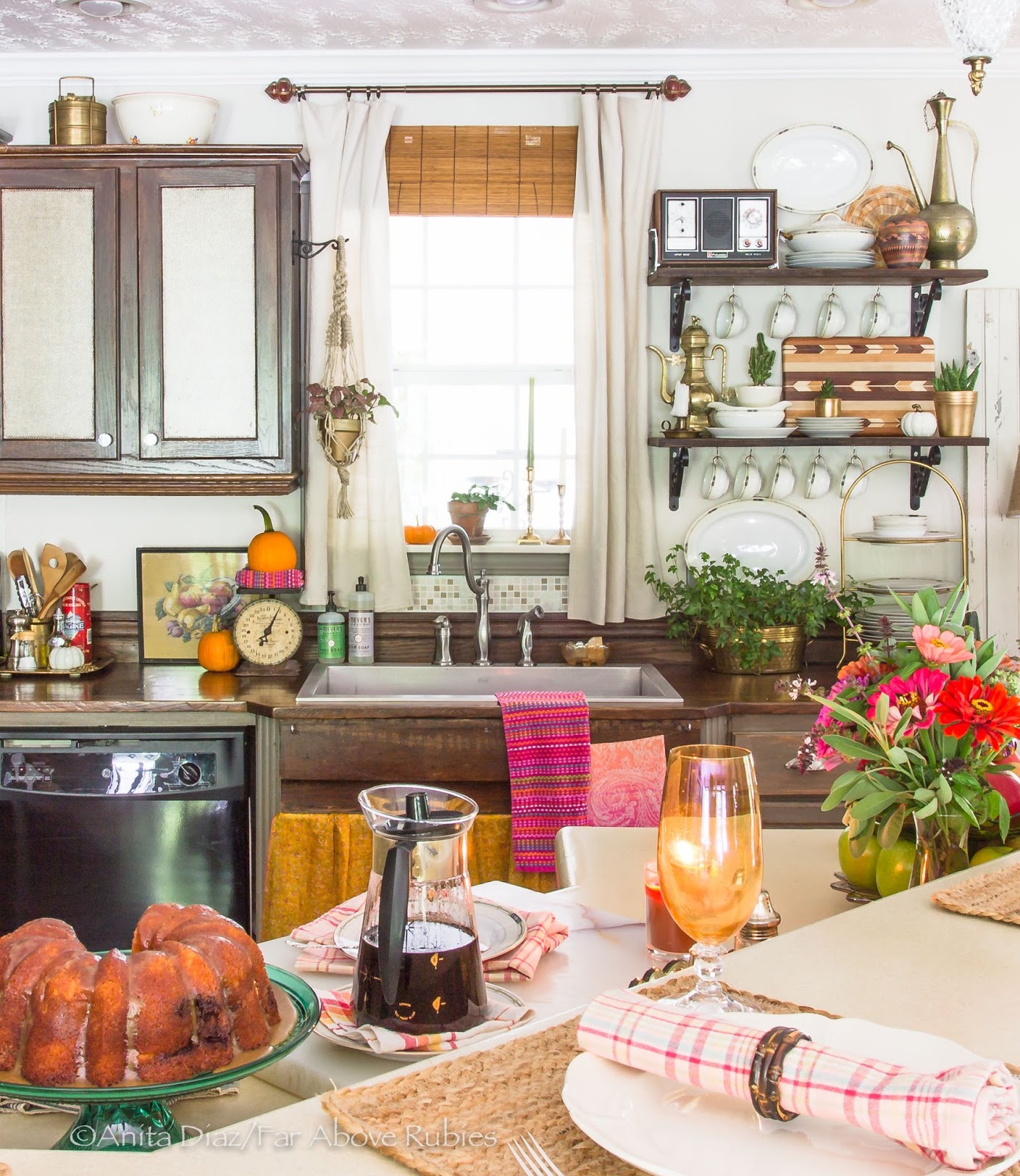 Anita – I'm in love! You are so creative and I love how you incorporate your heritage and family heirlooms into your home. I love your unabashed love of color – you do it right! I love those fiberglass mid-century lamp shades too – I have one with a chalk ware mariachi dancer. Growing up, my parents had those brass plaques in our kitchen too. Every part of your house is perfection – I'm thrilled to have you on the tour this year! Happy fall!