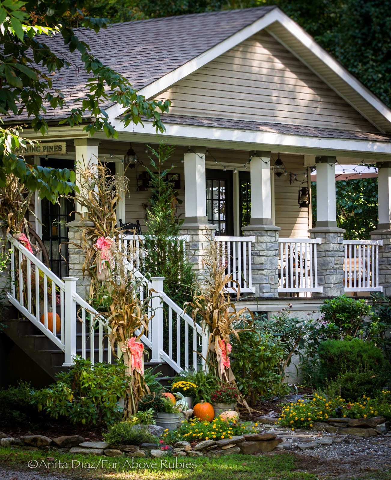 Thank you Anita for showing us your beautiful home in every detail. You have such a gift for mixing styles, colors, and layering…….everything just says "home"…….and that is always the defining moment I think. Just lovely. Love the bed springs on the porch with all the items hanging from it!! Have a wonderful Fall! Blessings, Linda