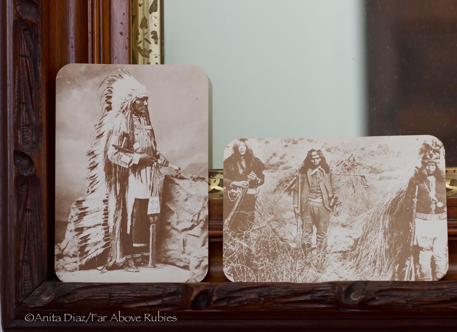My Cherokee corn bead necklace hangs from the mantel.