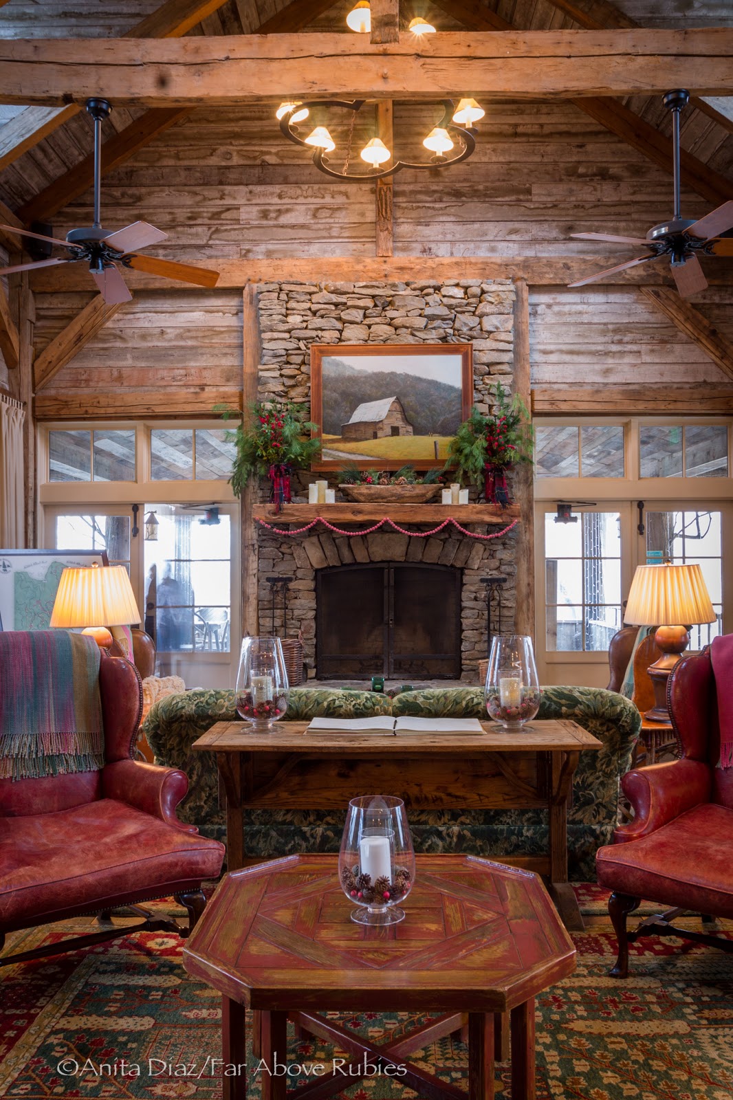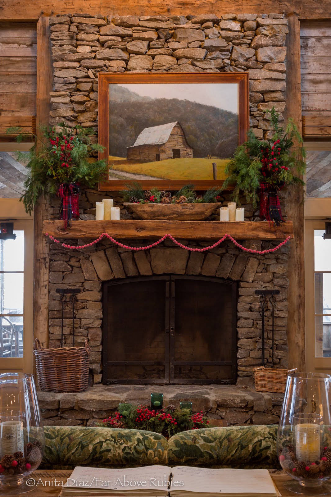 I wanted to share with you all some of my work at Balsam Mountain Preserve as I didn’t get a chance before Christmas. Everything I did there, could easily translate into winter. I, for one, hate to see the beautiful warmth of Christmas decor go away and be replaced with nothing, or worse — spring decor, so I like to incorporate lots of fresh greenery, candles and natural elements that keep a bare winter space looking warm and cozy through the winter months.