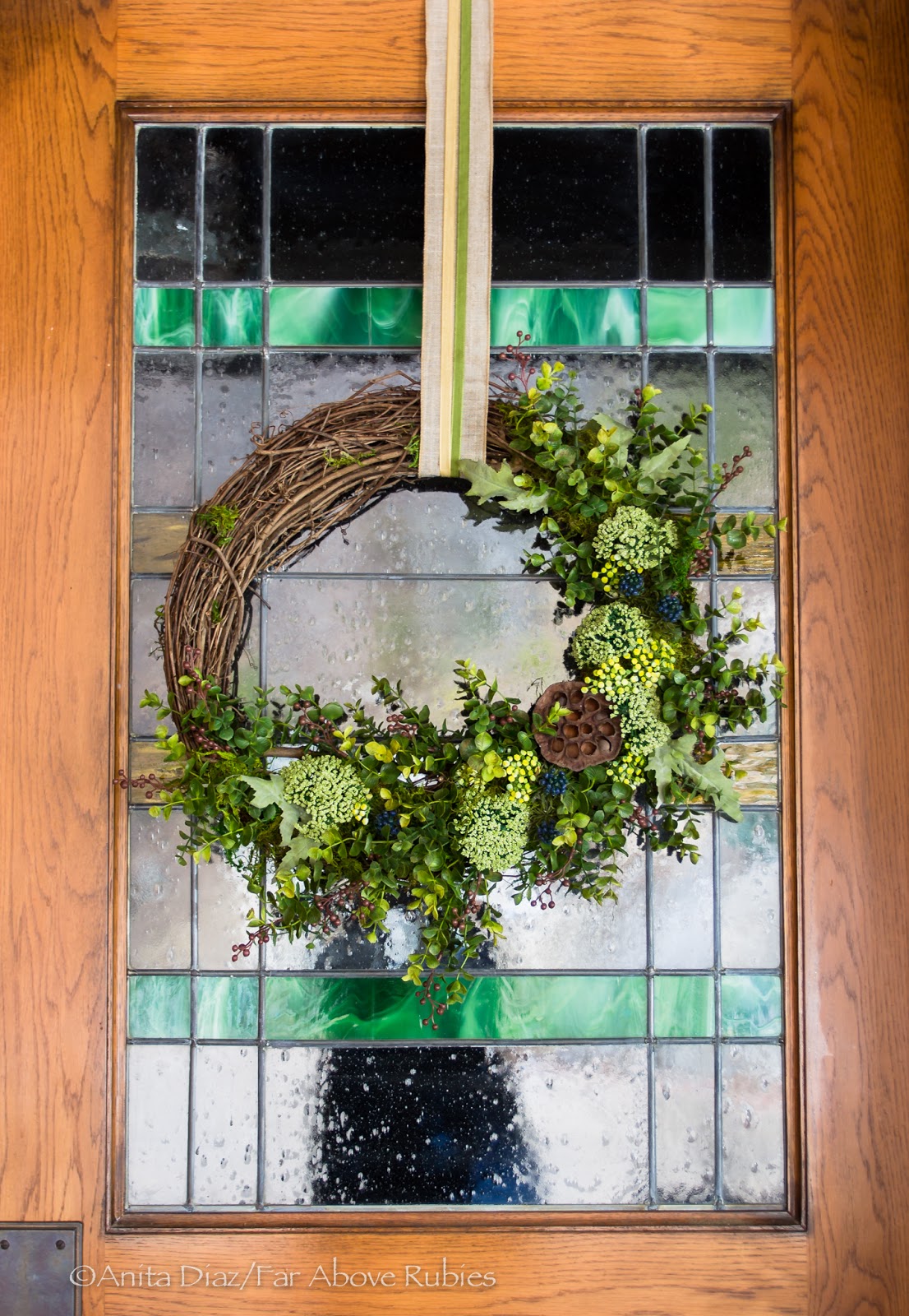 Wow, that is a lot of wreaths! They are so gorgeous and I love all of the doors with their leaded glass windows. What a fun project to get to do!