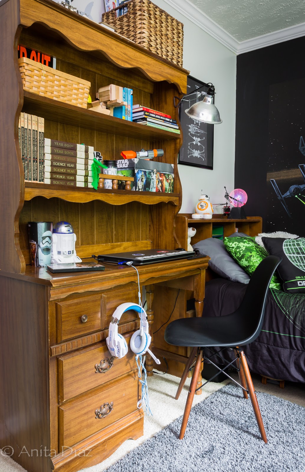 So, I did it in a weekend. For real. I cleaned out all the clutter, painted, rearranged furniture then styled Cristian’s room. He is a happy guy, and I’m a happy mom to have a clean and organized room.