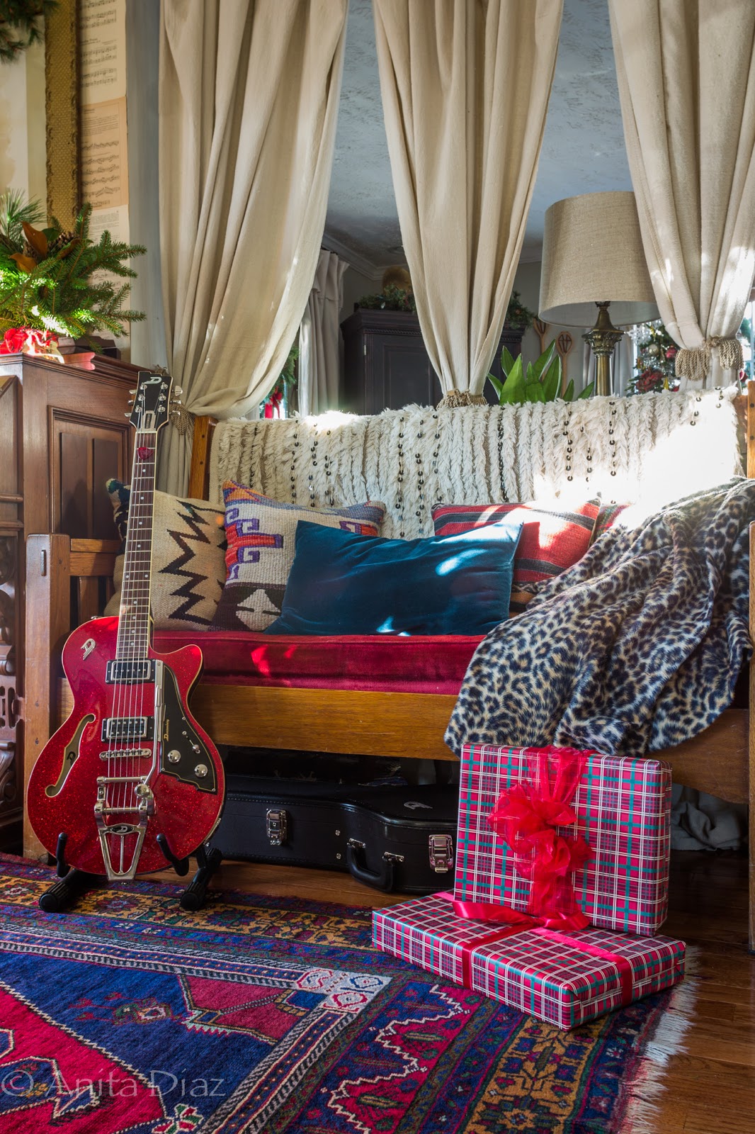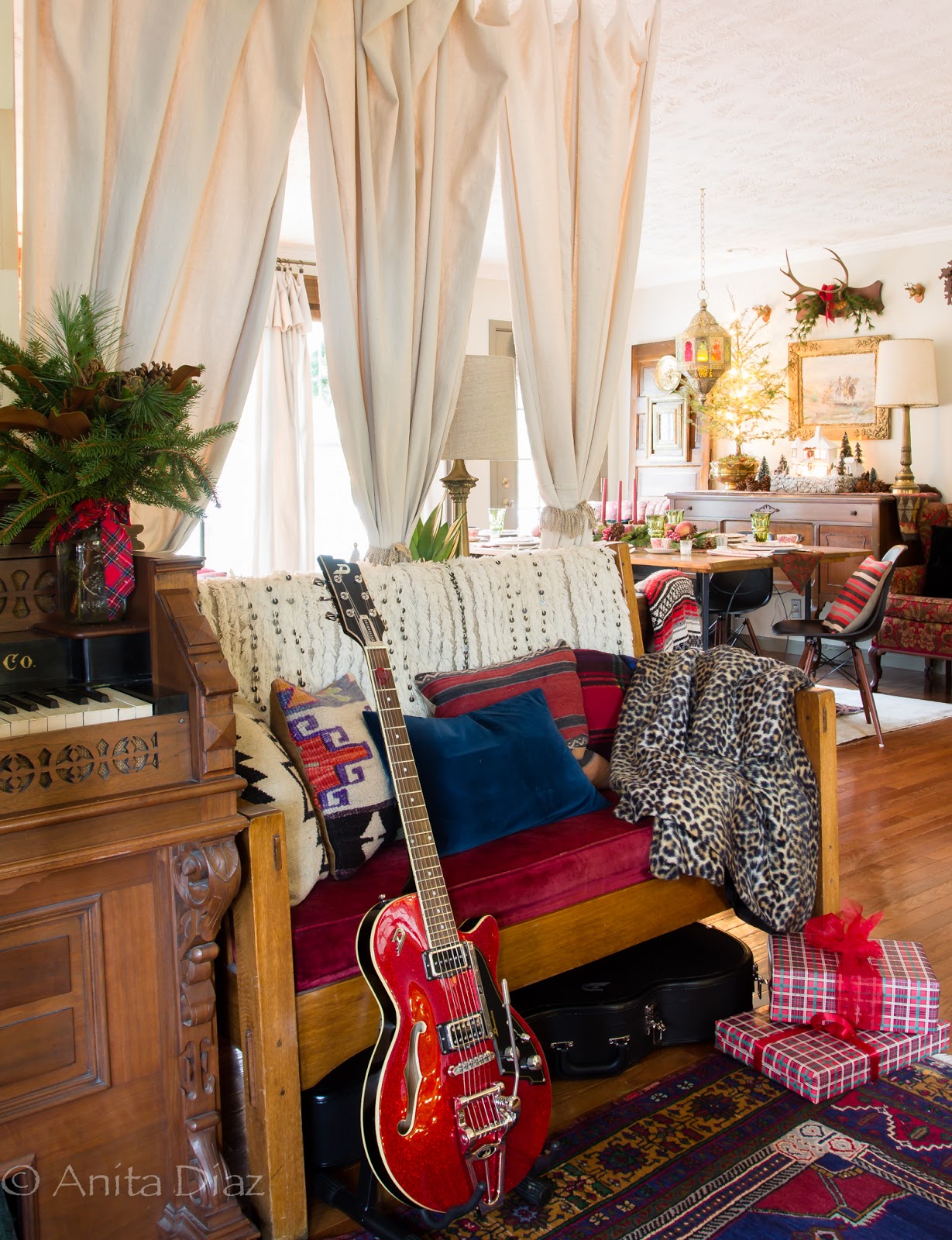This rug. It was the first rug I bought in Turkey, and I got it back out this fall and love the rich colors, especially at Christmas. And who wouldn’t love a sparkly, red guitar;-)